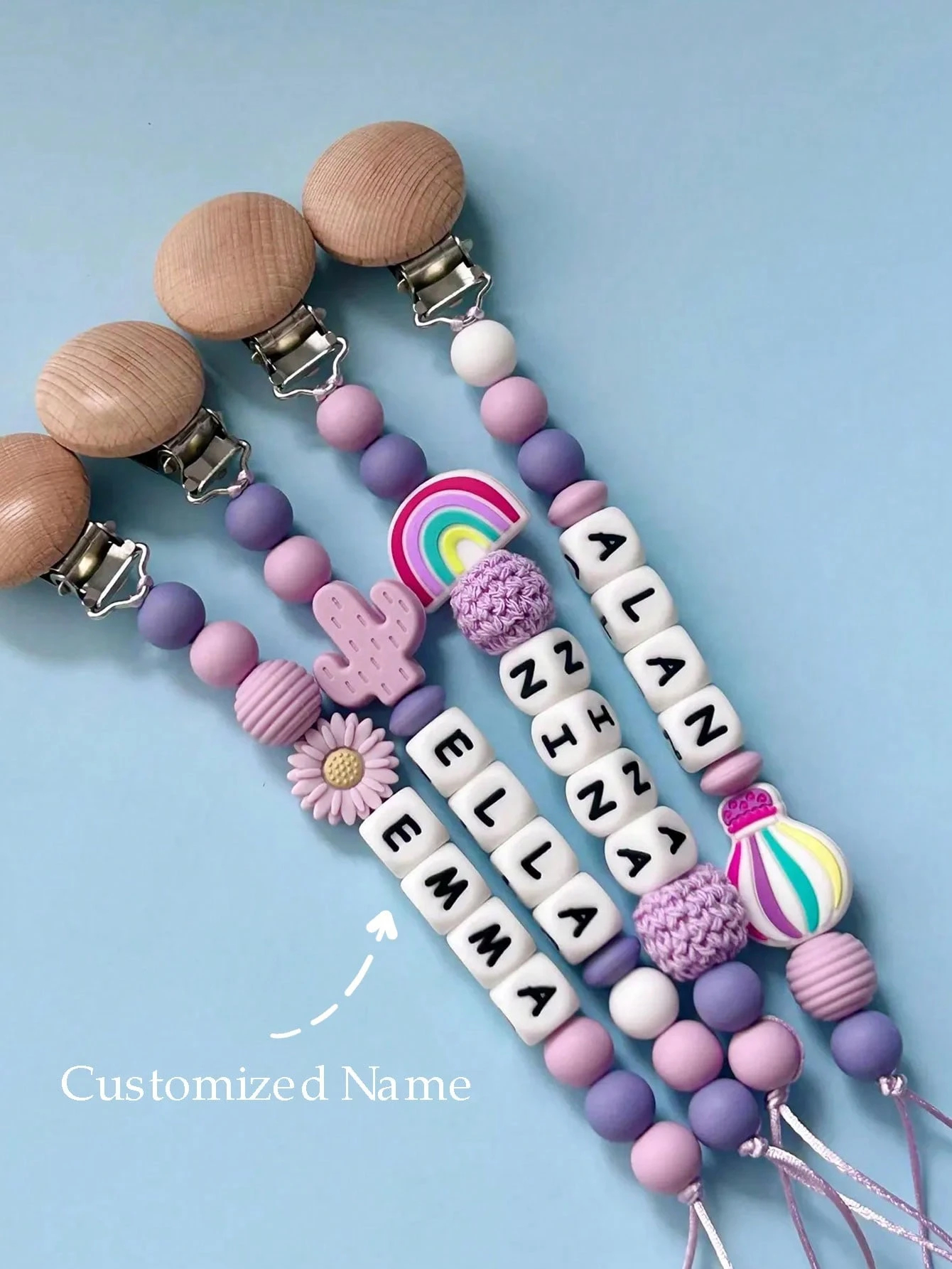 1pc Personalized Pacifier Clip Custom Baby Pacifier Clip DIY Customized Name Mouth Clip Mouth Chain - Friend Gift/Comfort Gift/Wooden Chain Gift/Holiday Gift/Birthday Gift/New Year Gift, Baby's First Gift Stylish, Adorable, High-Quality Custom, Personalized, Unique Ideal Gifts For Her Boyfriend, Girlfriend, Dad, Mom, Family, Friends, Son, Daughter, School Students, Kids For Anniversaries, For Birthdays School, Office, Home