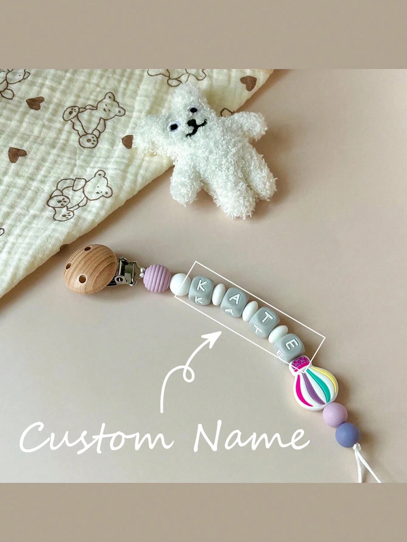 1pc Personalized Pacifier Clip Custom Baby Pacifier Clip DIY Customized Name Mouth Clip Mouth Chain - Friend Gift/Comfort Gift/Wooden Chain Gift/Holiday Gift/Birthday Gift/New Year Gift, Baby's First Gift Fashionable, Stylish, Cute Custom, Personalized, Unique Ideal Gifts For Her Her, Boyfriend, Girlfriend, Dad, Mom, Family, Friends, Pets, Workers, Kids, Custom, Personalized, Unique, Ideal Gifts For Him, For Anniversaries, For Valentine's Day, For Mother's Day, For Weddings, For Housewarming
