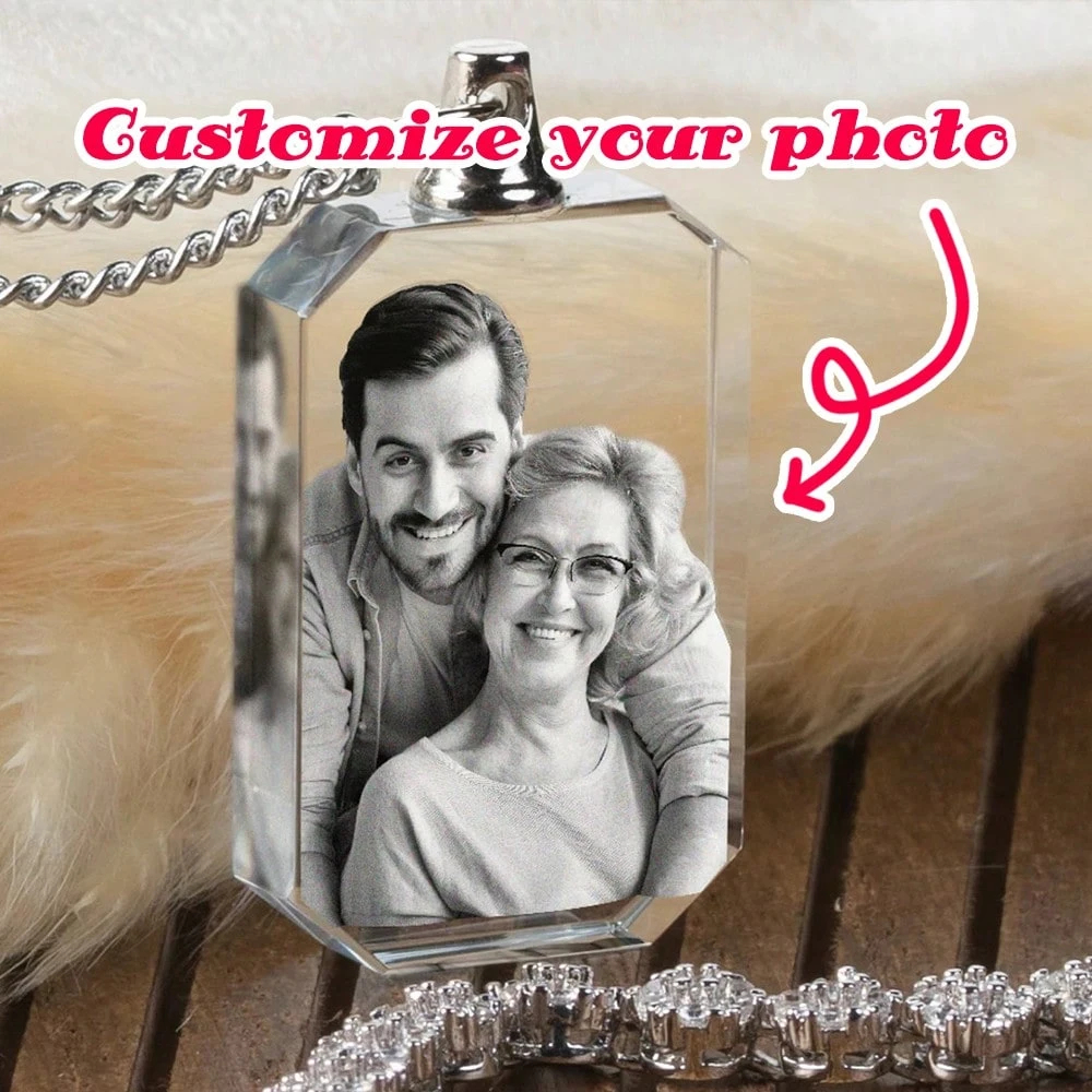 1pc Customized Anniversary Gift, Laser Engraved Photo Crystal Necklace, Personalized Photo/Group Portrait Memorial Necklace, Couple/Mother-Child/Family Photo Customized Mother's Day, Father's Day, Easter Gift