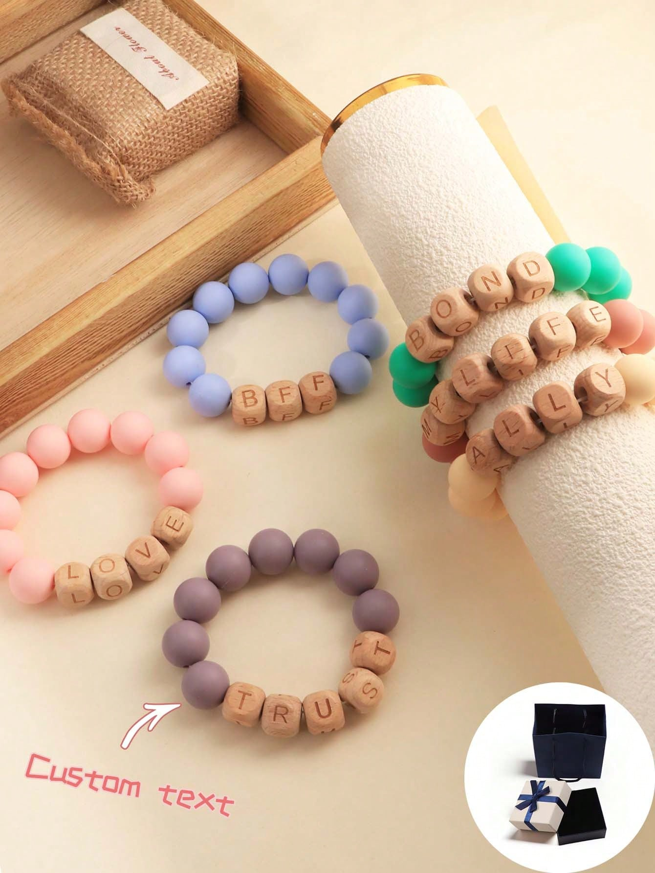 Customizable Letter Beads Silicone Bracelet, 15MM Elastic Cord, Personalized With Name, Message, Date, Suitable For Birthday, Valentine's Day, Anniversary, Gift For
