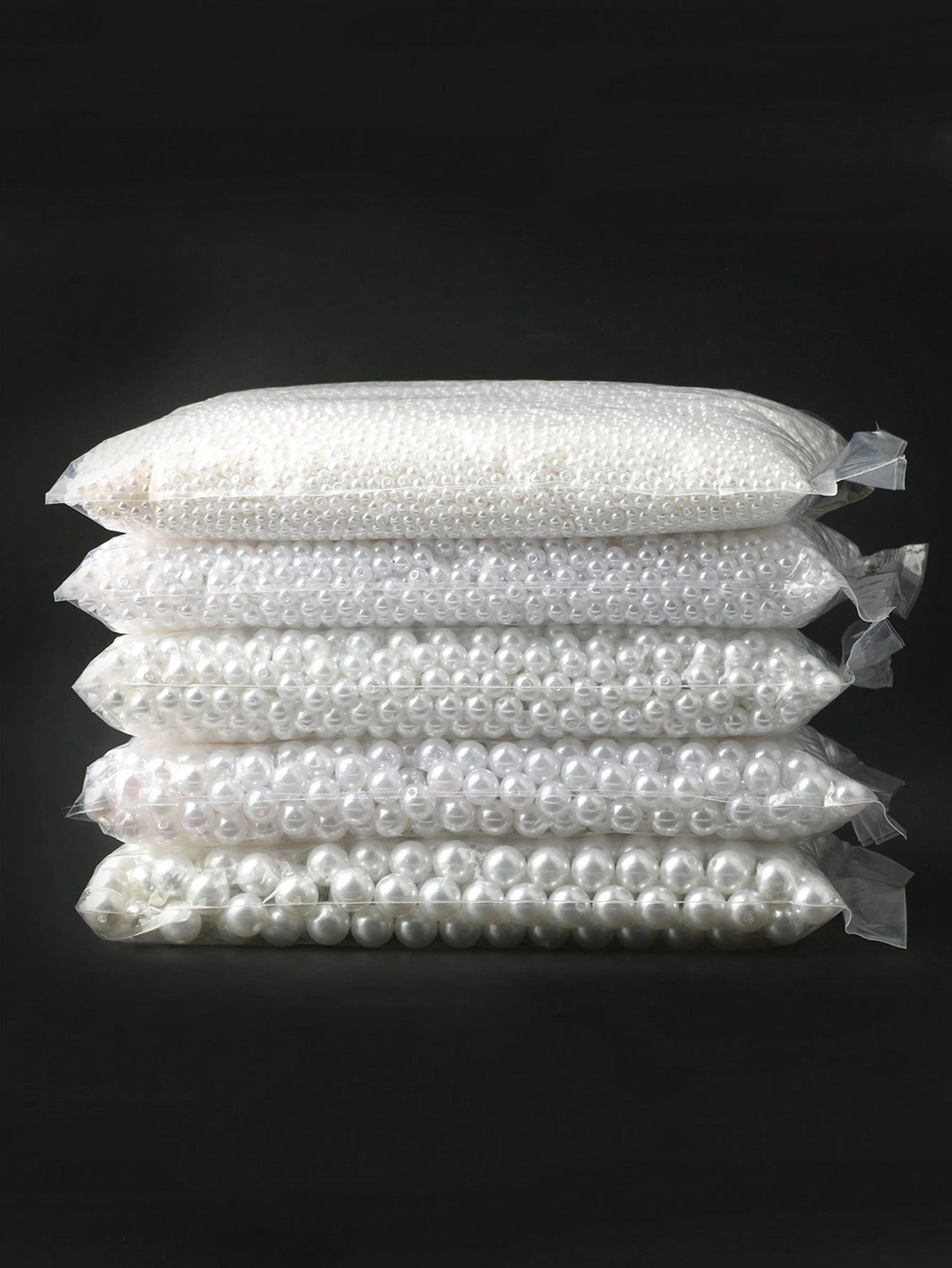 1pack White Faux Pearl Round Beads In Various Sizes For Diy Decoration