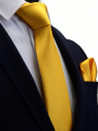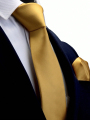 1set Men's 8cm Golden Twill Tie & Pocket Square Set, With Cufflinks Perfect For Wedding And Party Casual