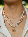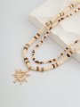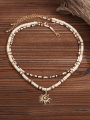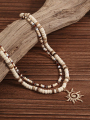 2pcs Fashionable Casual Minimalist Geometric Spiral Sun Coconut Shell Beaded Necklace Set, Suitable For Men's Everyday Wear And Parties