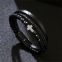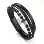 Leather Cross & Beads Decor Black Obsidian Bracelet