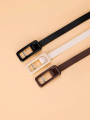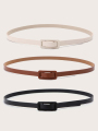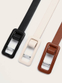 3pcs Women Metal Rectangular Buckle Casual Belt For Daily Life Summer, School Fall, Autumn, Halloween