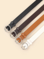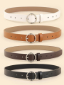 4pcs Round Buckle Women's Jeans Belt, Simple & Versatile Leather Decor Belt Summer, School Fall, Autumn, Halloween