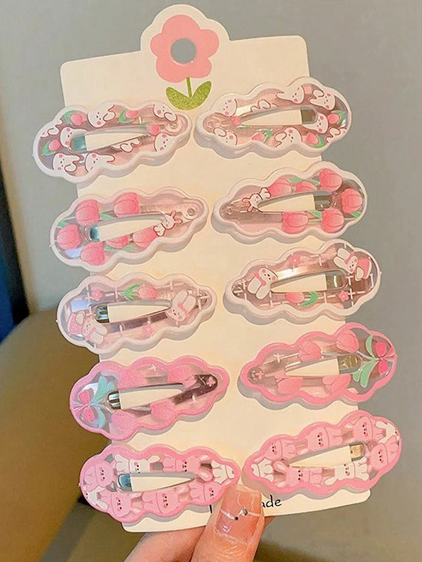 10pcs Cute Pink Rabbit Hair Clip, Bangs Clip,Side Hair Clip, Hair Accessories, Suitable For Daily Use Claw Clips Hair Claws Hair Barrettes, School Stuff, Pink Hair Clips