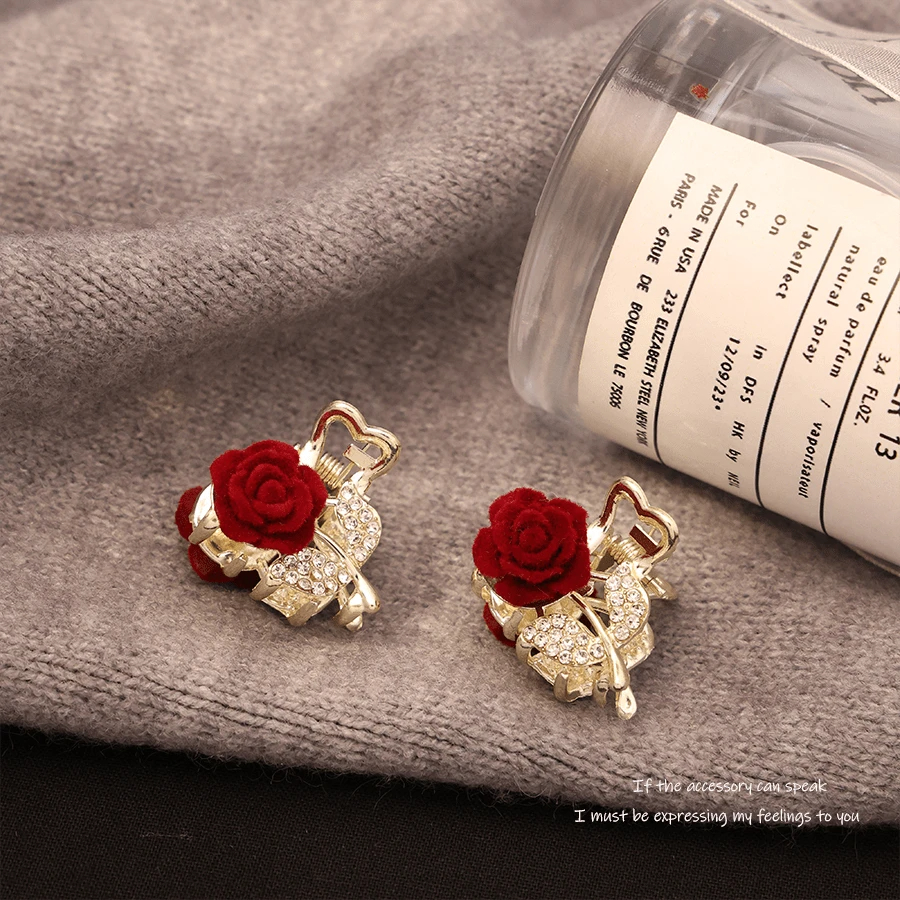 2pcs Valentine's Day Limited Edition Exquisite Romantic Rhinestone Rose Grab Clip Super Fairy Hair Claw Hairpin Clip Premium Mini Hair Grab Valentines Hair Clips Hair Jaw Clip Hair Clamps Hair Clutch Hair Catcher Clip, Claw Clip