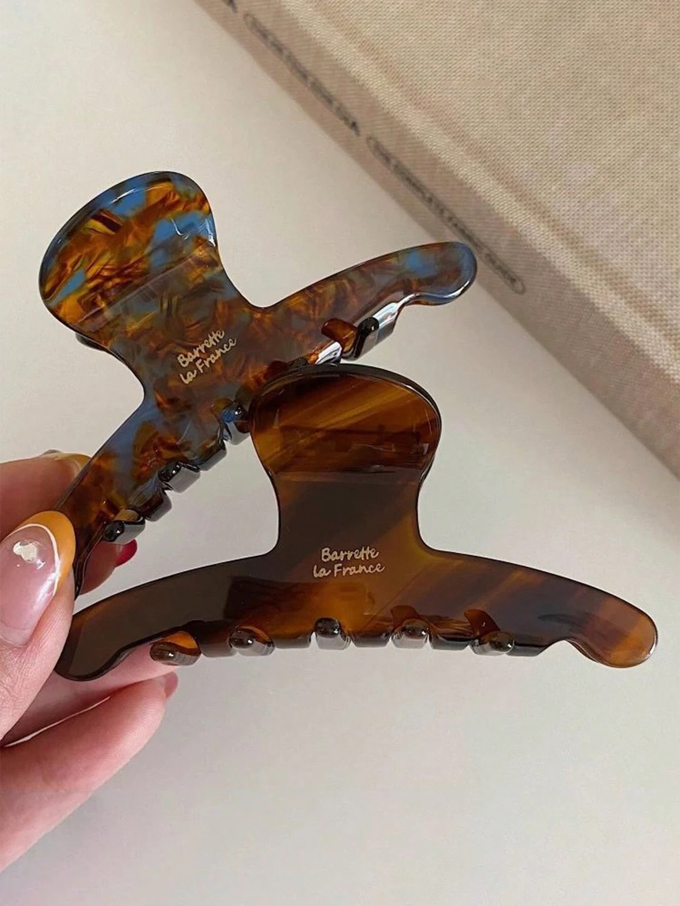 1pc Retro French Style Caramel Color Medium Size Curved Hair Claw Clip For Women Updo Hairstyle Hair Clips Hair Jaw Clip Hair Clamps Hair Clutch Hair Catcher Clip, School Stuff, College