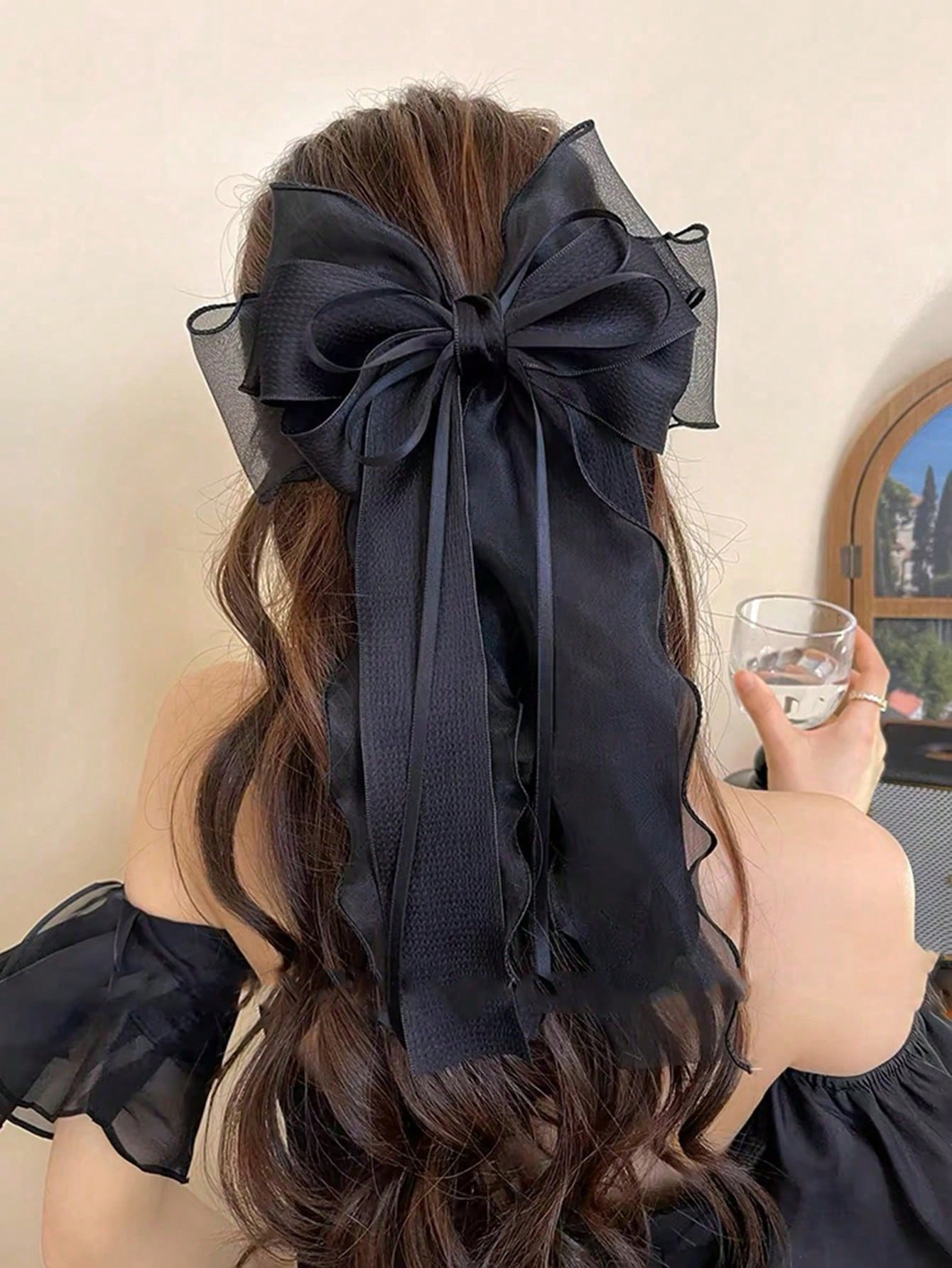 topshiny 1pc Elegant Soft Black Lace Net Bow Decor Hair Clip With Ribbon Claw Clips Hair Claws Hair Barrettes, School Stuff, College