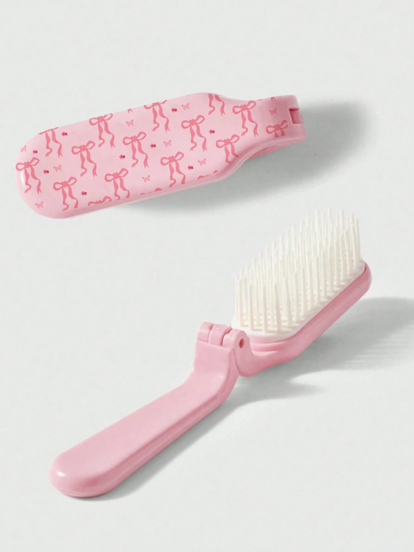 1pc Bow-Knot Printed Foldable Brush, 2-In-1 Portable Hair Comb With Massage Teeth For Women, Convenient Travel & Student Use