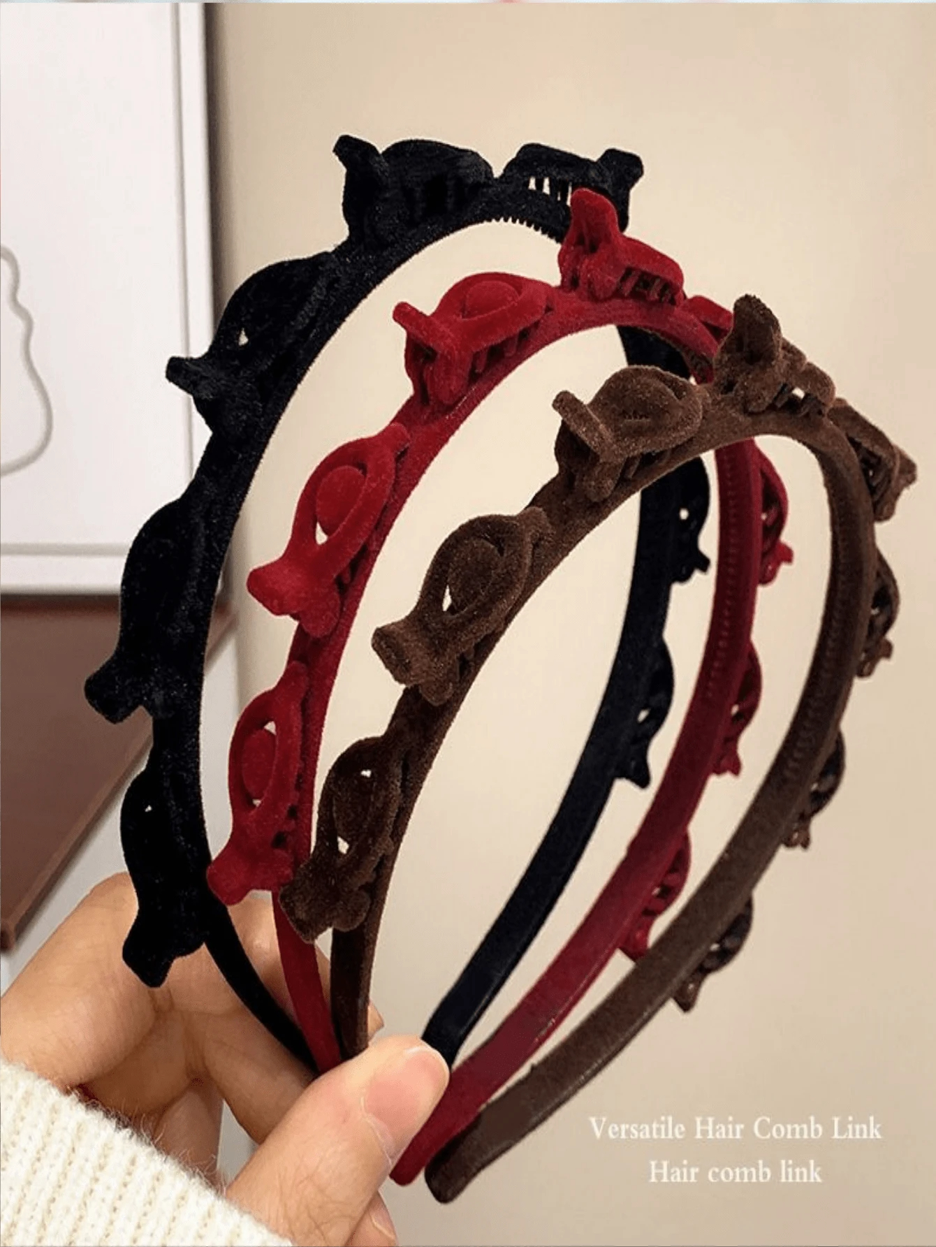 3pcs Flocked Braided Hair Clips/Set, 3 Colors, Perfect For Styling Side Bangs And Broken Hair, Hairpin And Headband Combo,Hairband,Hair Hoop Headbands