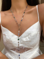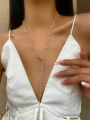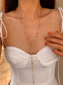 1 Pc Shiny Metallic Y Shaped Pendant Necklace, Sexy Bling Accessory For Everyday Wear, Dates, Parties, Holidays, Vacations, Deep V Neck, Anniversary, Birthday Gift, Boho Chic Elegant Simple Fashionable Cute
