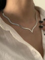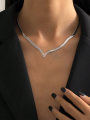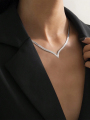 1pc French Metal Punk Minimalist Style Jewelry, Hip Hop Metal Street Photography Snake Bone Necklace, Minimalist Geometric V-Shape Necklace For Women, 2025 Happy New Year Gift