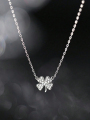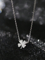 1pc Silver-Color Lucky Clover & Rhinestone Inlaid Simple Yet Elegant All-Match Necklace, Suitable For Girls Valentines,Mom,Mother,Mother's Day,Gift
