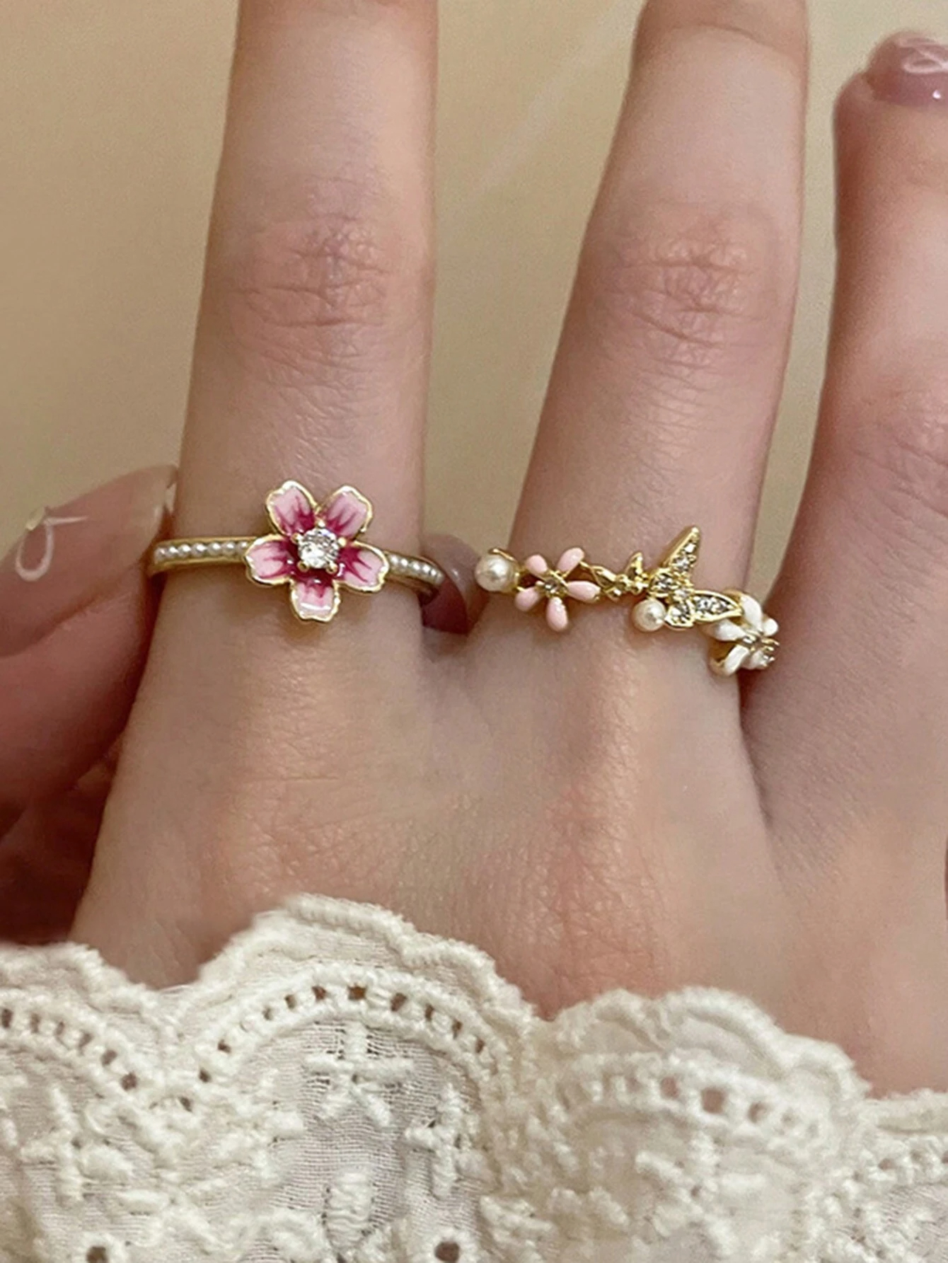 2pcs Fashionable Butterfly & Flower Decorated Rings Set, Suitable For Women's Daily Wear Valentines,Mom,Mother,Mother's Day,Gift