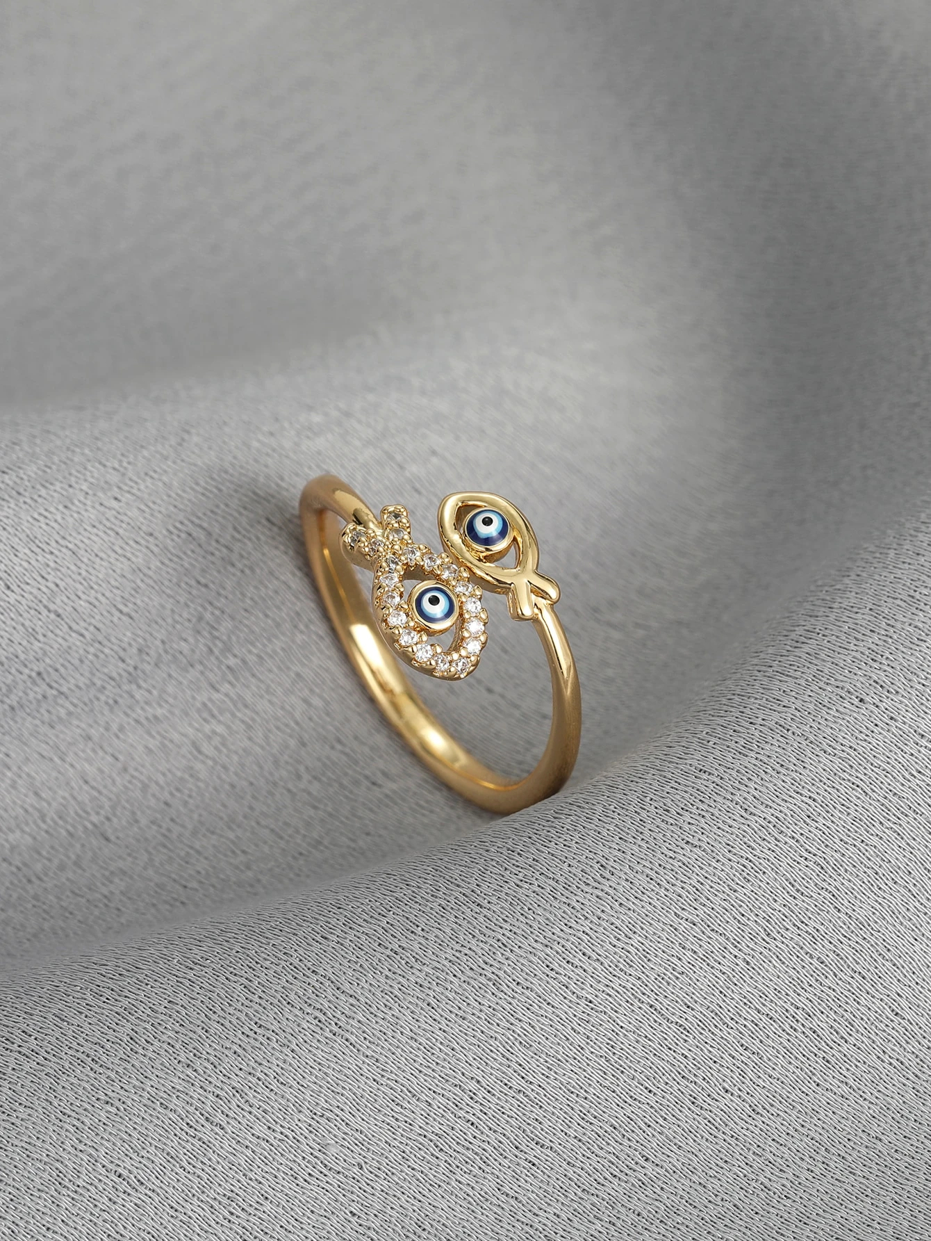 Evil Eye Detail Rhinestone Decor Cuff Ring
