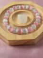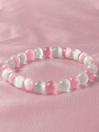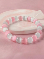 1pc Elegant & Cute Pink And White Cat Eye 8mm Beaded Bracelet, Adjustable For Women, Daily Accessory, Perfect Gift For Mother's Day Or Holidays