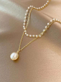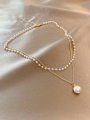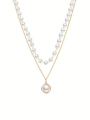 1Pc New Women's Pearl Necklace Kpop Gold Bead Pendant Necklace Goth Double Layer Chain Choke Loop Women's Daily Fashion Party Jewelry Gift