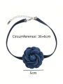 1pc Vintage Style 3d Denim Blue Flower Collar Necklace Valentines,Mom,Mother,Mother's Day,Gift