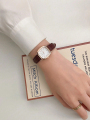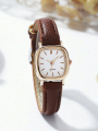 1pc Women's Brown PU Leather Strap Fashion Bar Scale Dial Casual Simple Style Quartz Watch, Suitable For Daily Wear