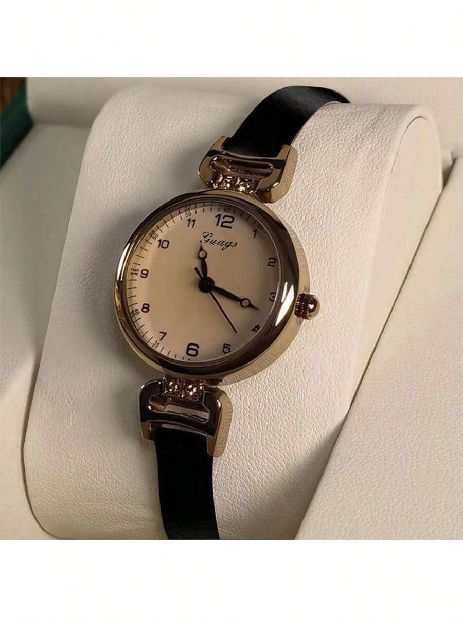 1pc Women's PU Leather Strap Round Digital Small Dial Vintage British Style Niche Luxury Quartz Watch, Suitable For Daily Wear
