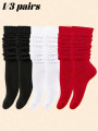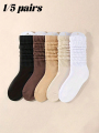 3 Pairs White Women Mid-Calf Socks,Casual Simple Fashion Daily Wear,Warm Comfort Soft Elastic And Durable Mid Calf Socks