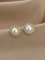 topshiny 1pair Women's Vintage & Elegant Faux Pearl Earrings, Small Round Studs With Sparkling Rhinestones