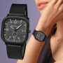 Unisex Fashion Business Quartz Wristwatch With Square Silicone Band