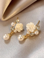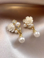 topshiny 1 Pair Elegant White Flower With Faux Pearl And Crystal Studded Dangle Earrings For Women, Suitable For Bride Wedding Party Valentines,Mom,Mother,Mother's Day,Gift