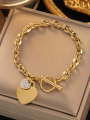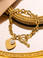1pc Elegant & Luxurious Stainless Steel Bracelet Plated In 18k Gold-Color With Two Heart Shaped Pendant, Suitable For Women To Wear At Parties Or As A Gift Valentines,Mom,Mother,Mother's Day,Gift